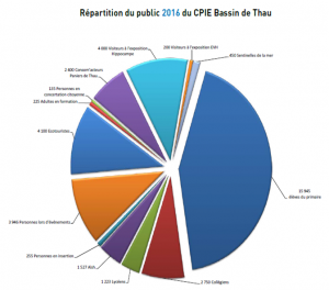 Puis une rapide présentation du bilan d’activité a été effectuée. En 2016, ce sont 37 200 personnes sensibilisées par le réseau CPIE Bassin de Thau à travers ses différents pôles d’activités ; mise en réseau d’acteurs, sensibiliser les publics, observer l’environnement, accompagner les territoires, partager et concevoir des ressources. Des nouveautés en 2016 avec le lancement de deux projets phare à l’échelle de la façade méditerranéenne : Sentinelles de la mer Occitanie, portail régional de science participative, et reprise de la campagne Ecogeste Méditerranée Occitanie, par le CPIE Bassin de Thau.