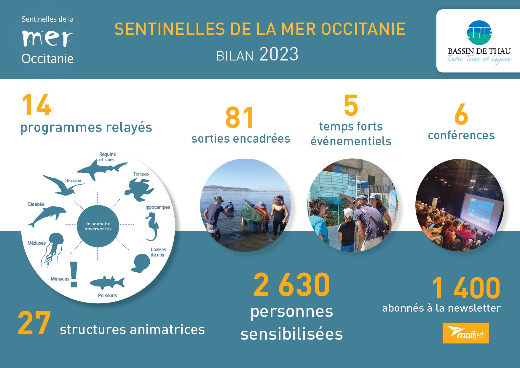 🔹 En 2023, le réseau Sentinelles de la Mer Occitanie a rassemblé 27 structures animatrices, porteuses de programmes de sciences participatives, ou structures-relai de ces programmes.