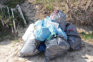 Parmi les 1900 L de déchets collectés et stockés dans des sacs, on retrouve :
